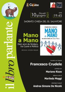 Giovedi 10 giugno 2021, a partire dalle 19,45 presso il Sagrato della Chiesa Madre del Santissimo Salvatore in via Regina Sforza, torna Il libro parlante, con la presentazione del libro “Mano a mano” di Francesco Crudele, Sindaco di Capurso dal 2010 al 2020.