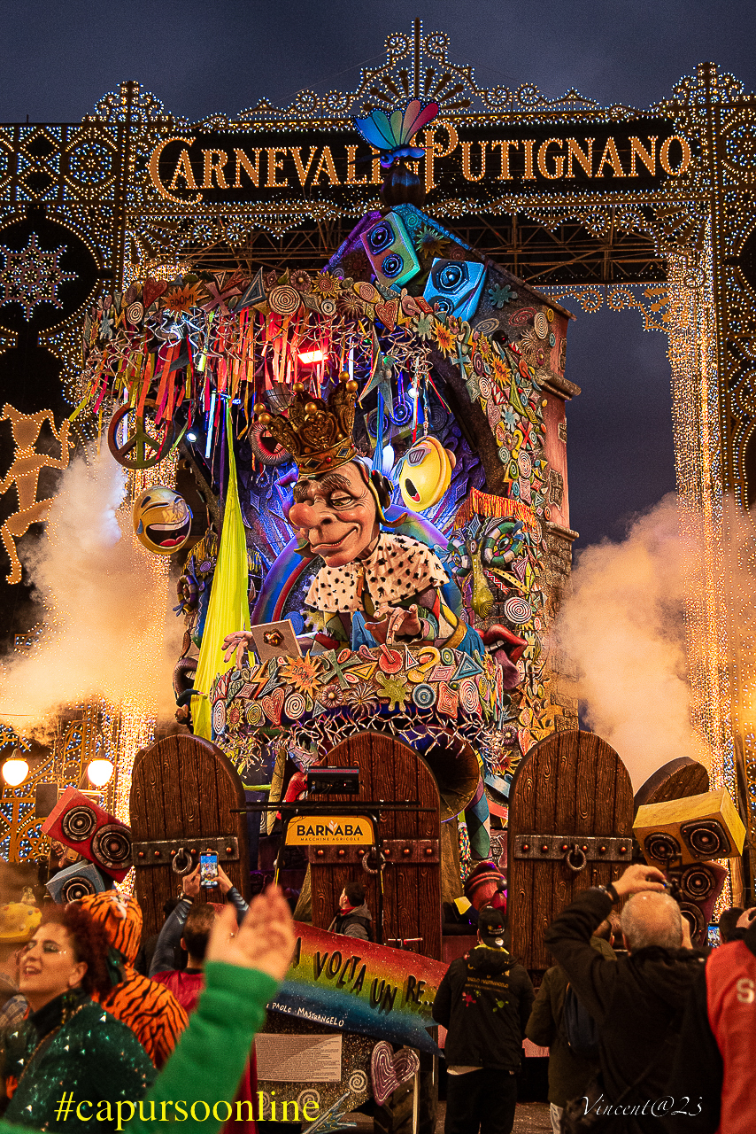 E’ il Re Carnevale che finalmente si risveglia dal torpore dei 2 anni di pandemia e fa grande festa, il vincitore della 629° Carnevale di Putignano. Una vittoria reale e simbolica per il Carnevale putignanese che per il suo Closing Party raccoglie circa 15mila spettatori.