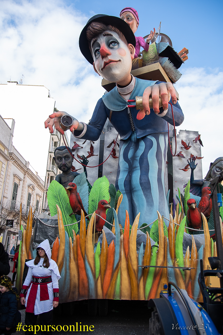 Il Closing Party era iniziato con la parata dei gruppi mascherati che dalle ore 18.30 avevano sfilato per l’ultima volta sotto il Sipario di luci ormai iconico del Carnevale di Putignano. Una parata coloratissima aperta dal gruppo “Viva il lupo, abbiam bisogno di aiuto” a cura della Fidas e proseguita con “La sirenetta è di vedetta” dell’associazione La Zizzania, “E la rana bussò” de Il Coriandolo, il gruppo di oltre 400 alunni dell’Istituto comprensivo De Gasperi-Stefano da Putignano dal titolo “Alice nel paese della meravi…lienza” per finire con il gruppo mascherato “La fiaba è servita” di “Officina del Ben essere”. A chiudere la parata era stato il RadioCarro delle Fiabe Sbagliate con i DJ dello Zoo di 105 Pippo Palmieri e Wender assieme a Marco e Claudia di Radio Norba.