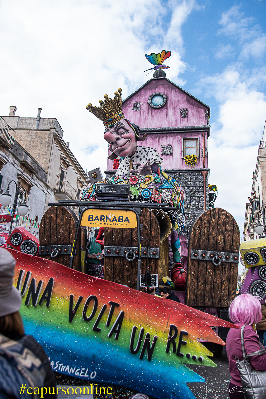 L’edizione firmata “Tutta un’altra fiaba” incorona il carro dal titolo “C’era una volta un re” dell’associazione Carta&Colore di Paolo e Vito Mastrangelo al primo posto della categoria Carri Allegorici. Secondo posto per l’opera del cartapestaio Deni Bianco (associazione cArteinregola) che ha presentato il carro “De-Sidera!” e terzo posto per “La rotta dei merli” dei maestri cartapestai Pinuccio Nardelli e Diego Simone (associazione Carta…pestando).